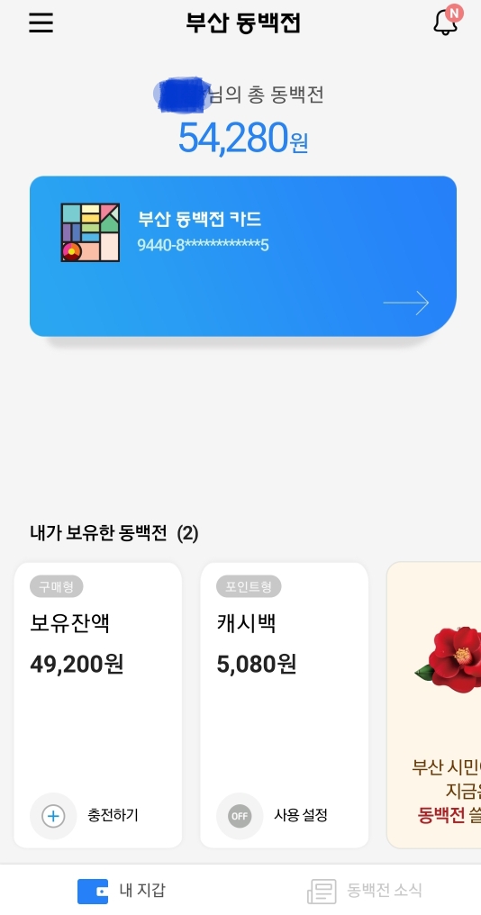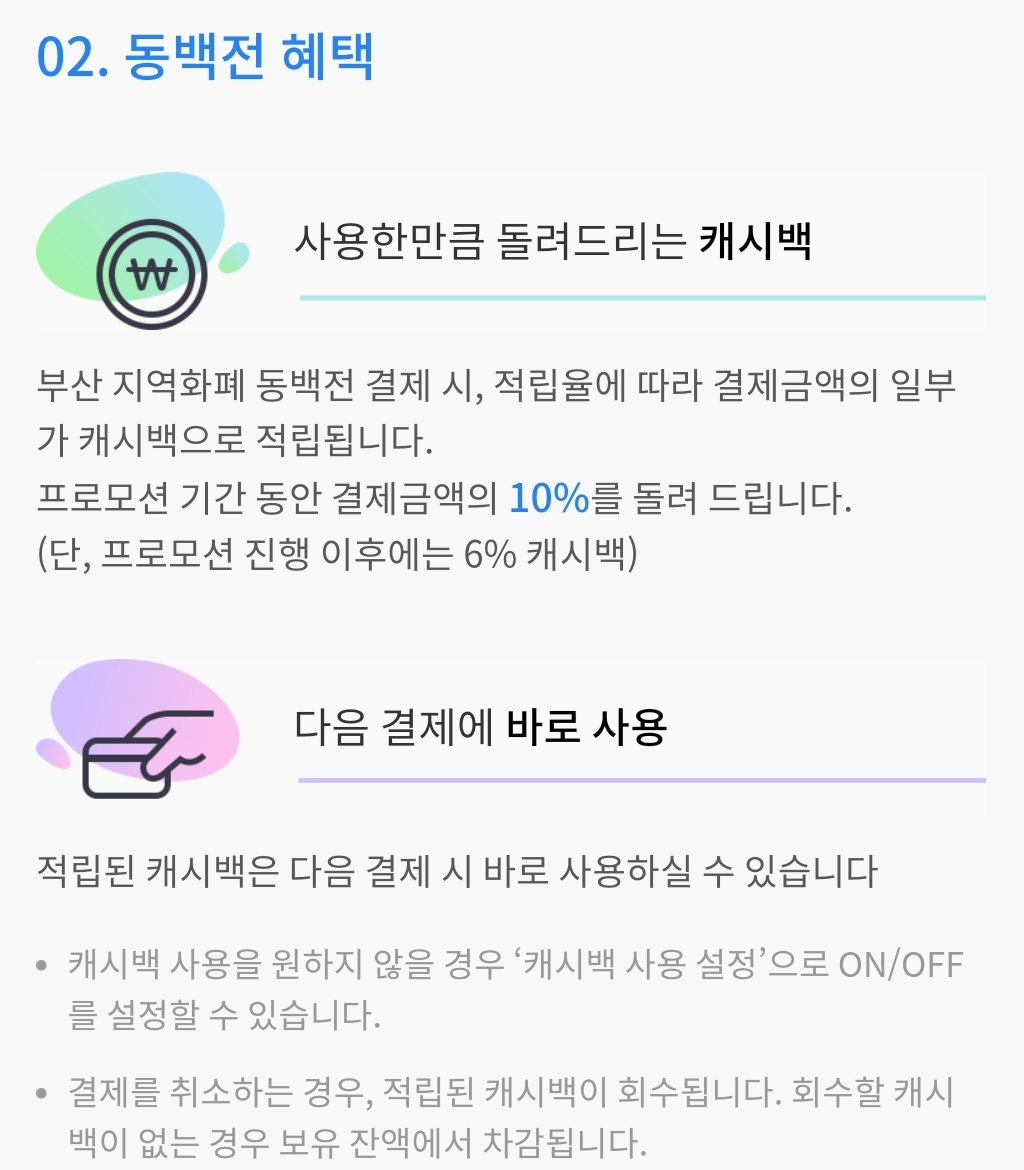 부산 지역화폐 동백전 결제 시, 적립율에 따라 결제금액의 일부가 캐시로 적립됩니다.