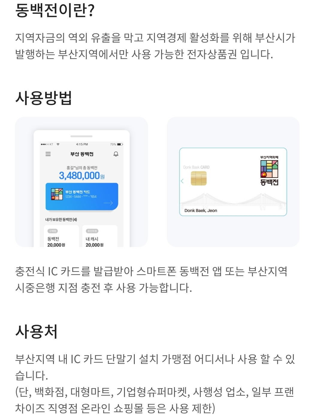 부산 시민을 위한 부산시 지역화폐, 동백전.